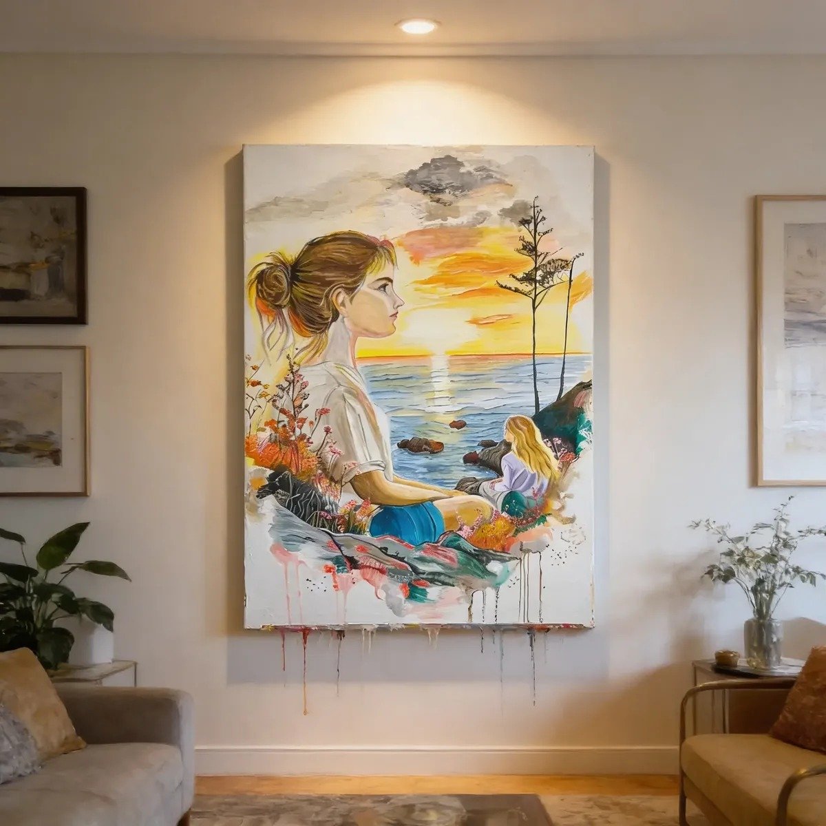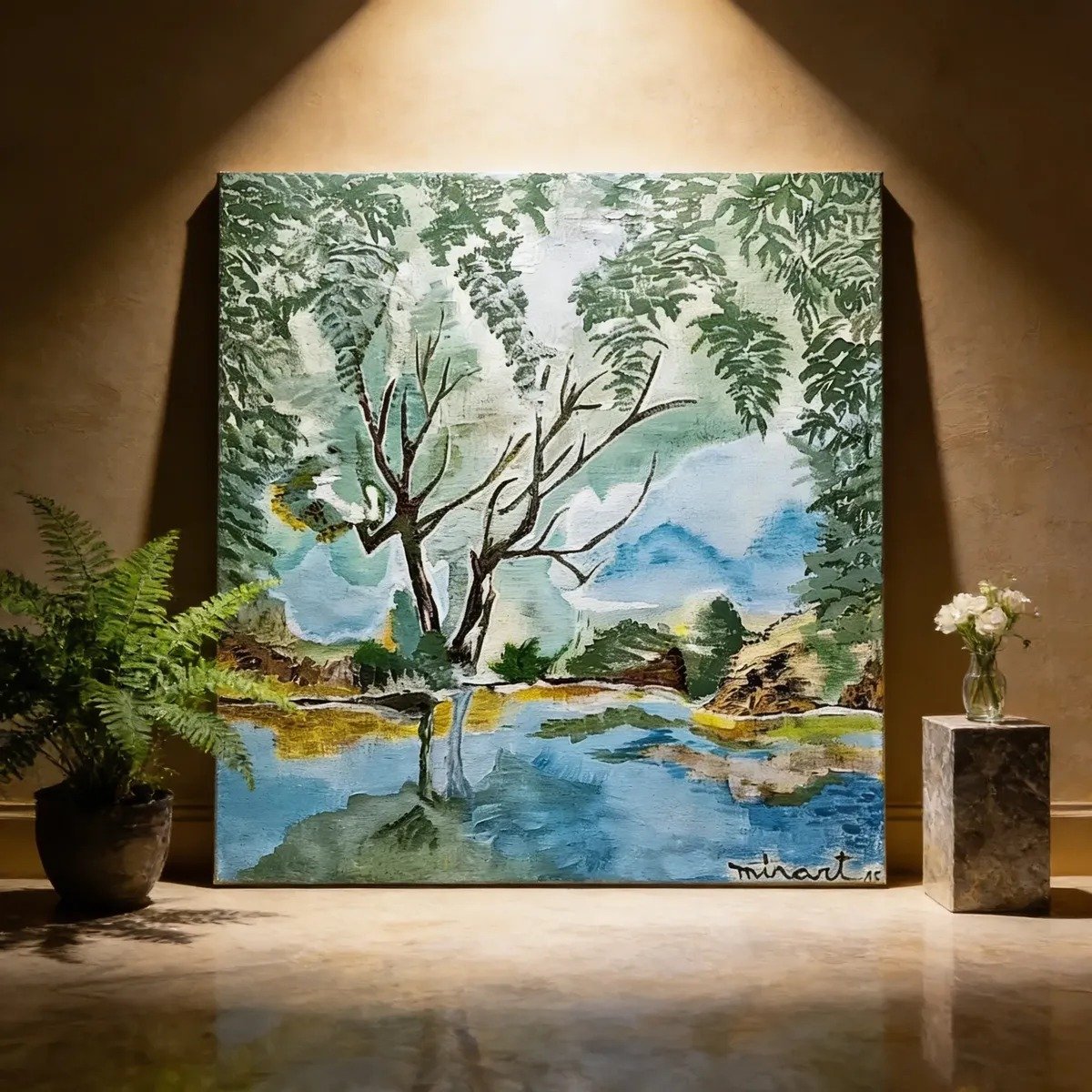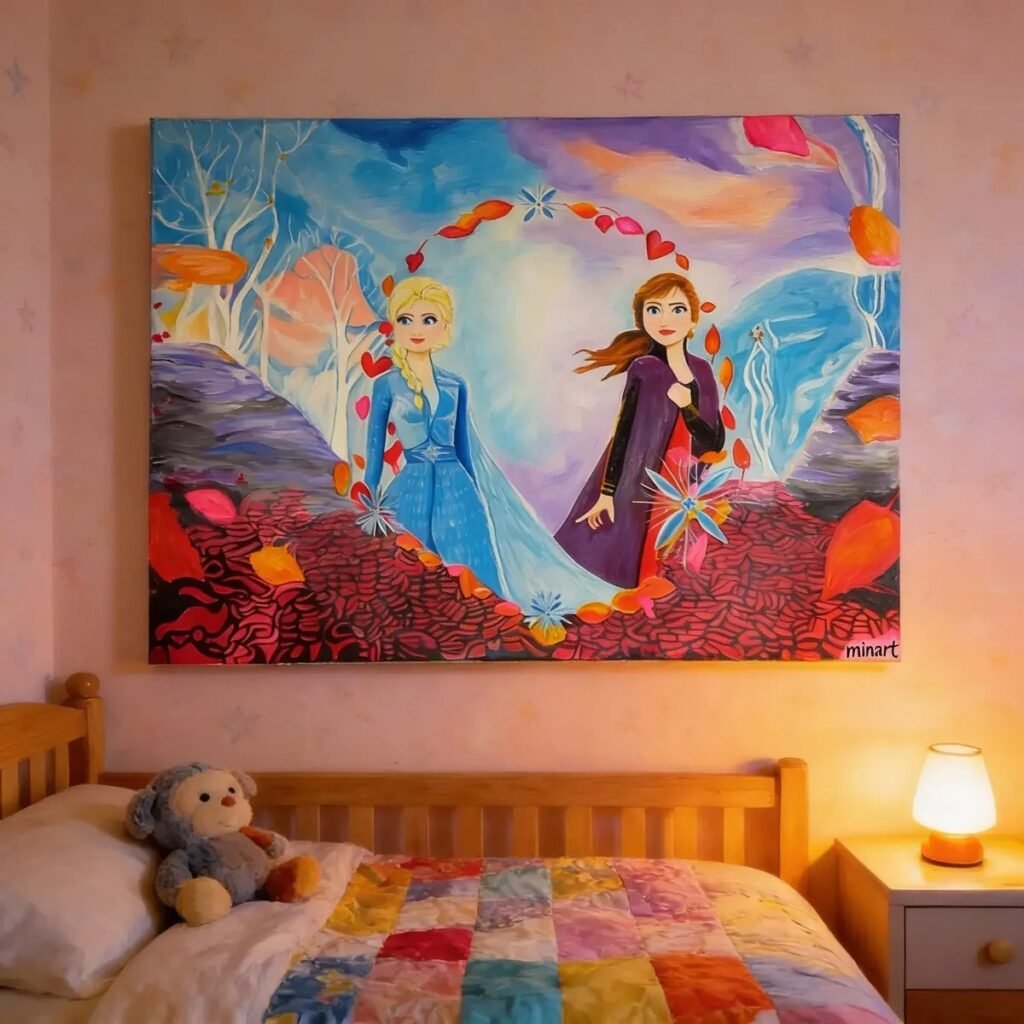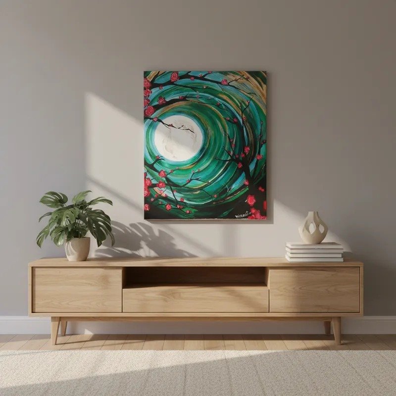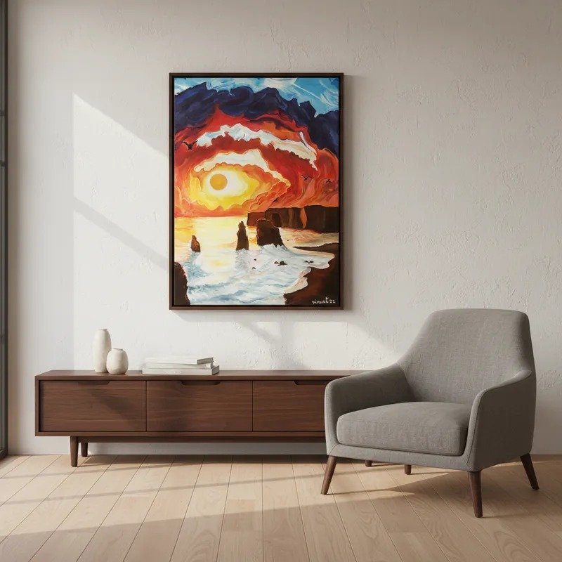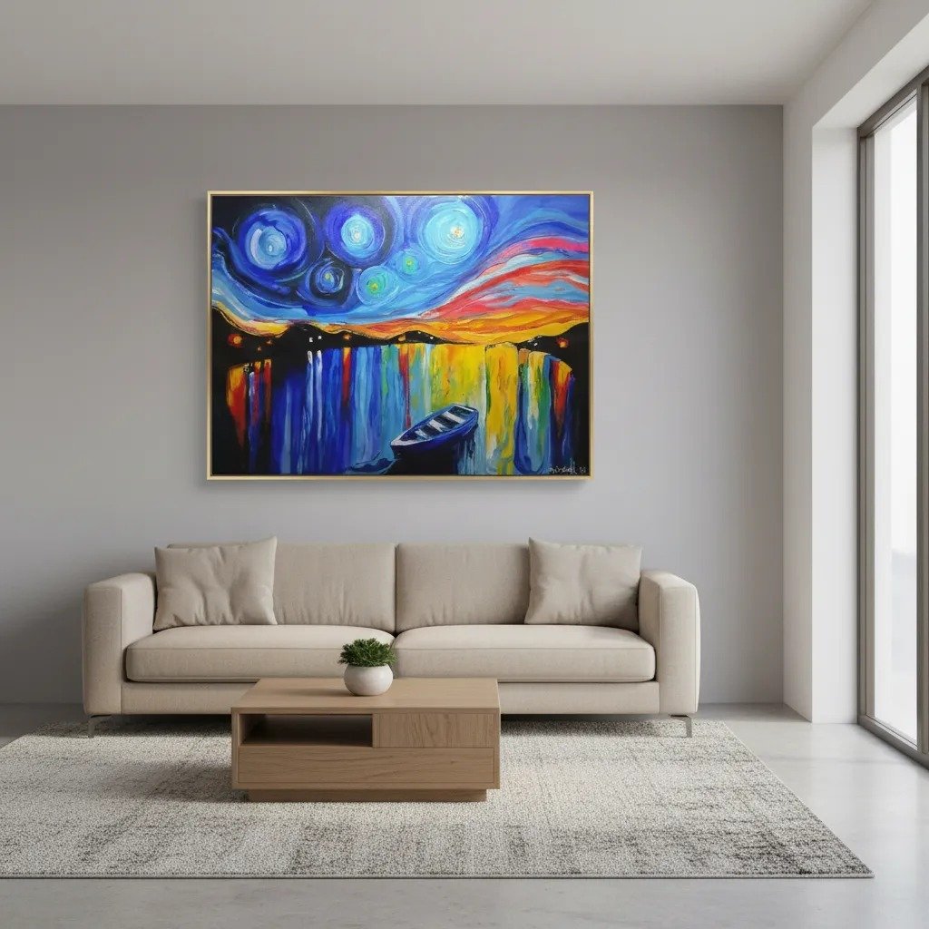 Todas las obras son creadas en bastidores de tela profesionales de alta calidad, con pintura acrílica y barnizado al finalizar, para proteger la pintura.